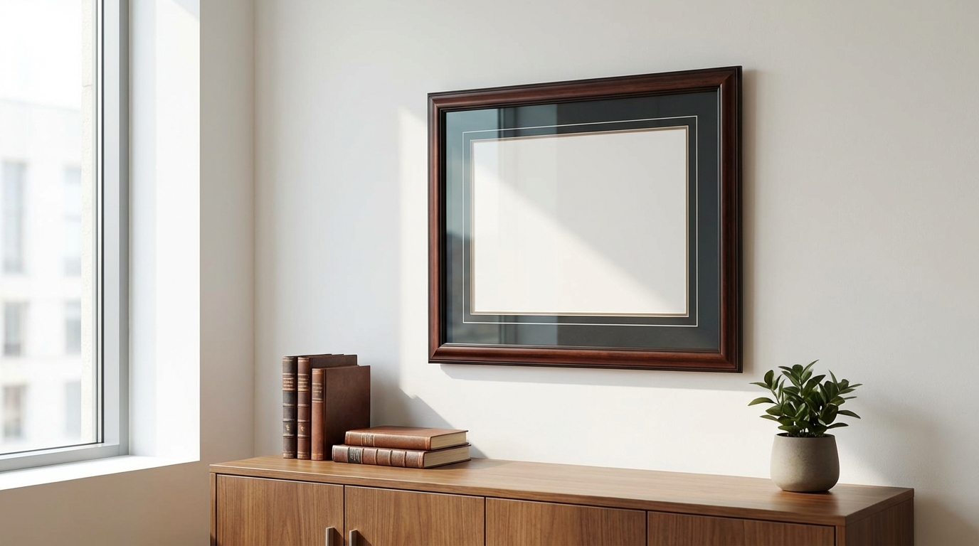 - Personalización: Disponible en una infinidad de colores, texturas y grosores. Podemos utilizar uno o varios passepartouts superpuestos para crear un efecto más dramático o sofisticado, eligiendo tonalidades que complementen los colores del diploma o la decoración del espacio. Es fundamental que sea de calidad "acid-free" para no dañar el papel con el tiempo.
