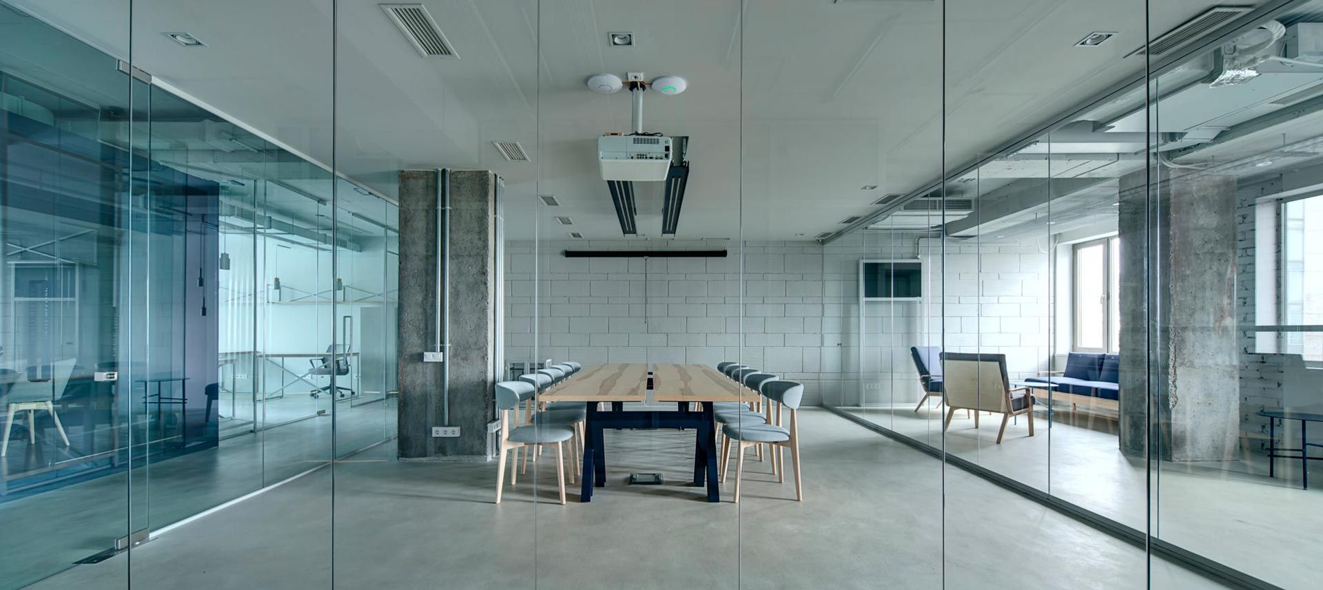 Tabiquería de cristal para dividir espacios de trabajo sin perder la sensación de amplitud. Soluciones correderas y fijas.